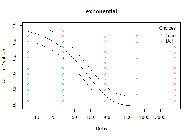 These discount functions can be fit to indifference point data (see td_ipm), choice-level data (see td_bcnm), or data including both choices and reaction times (see td_ddm).